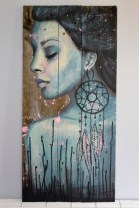 « Awa », acrylique sur bois, 60 x 38 cm« Dream Catcher », acrylique sur bois, 80 x 38 cm« Rose », acrylique sur bois, 60 x 38 cm« Peine-Ombre », acrylique sur bois, 61 x 35 cm« L’Adorée », acrylique sur bois, 40 x 37,5 cm